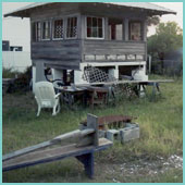 In its previous incarnation, the Roost-- just behind the Luscious Little Cottage-- was a ticket booth. Now it sleeps two comfortably!