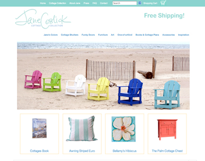 Jane's store features her unique colors and personal designs created just for her by Georgia craftsmen Chris Walker and Glen Wilson. Also available are unique and one-of-a-kind paintings and accessories by Jane's unique team of artists and artisans.